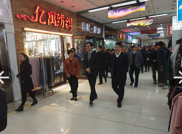 1121日上午,由兰溪市市委书记朱瑞俊率领的考察团一行49人,在区委书记沈志江、轻纺城建管委主任沈关祥和集团公司董事长翁桂珍等领导的陪同下考察了中国轻纺城联合市场。
