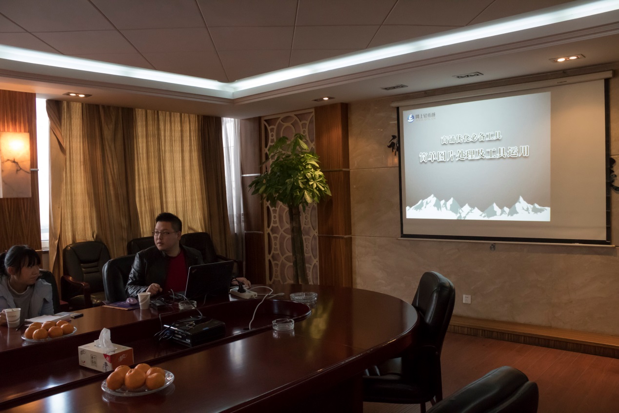 分享会上,大家积极参与并讨论了如何拍摄使面料更加美观,如何展现出拍摄面料图片的正常曝光、色彩准确、图片清晰和花型明了的效果。同时介绍了主流修图软件如PS、美图秀秀及光影魔术手的使用,分别在投影仪上展示各软件的基本操作过程,添加图片水印、文字标签等,使图片更加美观。