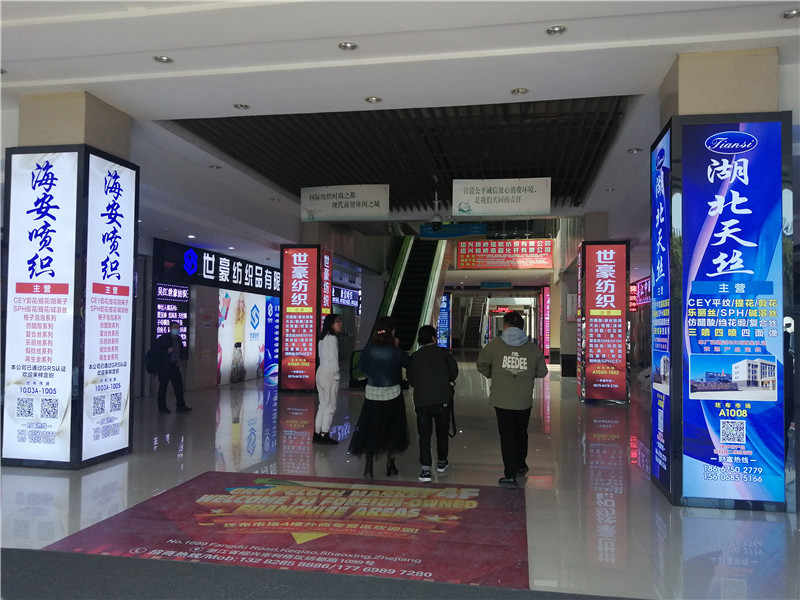 现阶段,市场内广告位已正式投用,一方面拉近了客商和经营户之间的距离,丰富了面料产品宣传渠道,另一方面有效利用了市场公共区域资源,提升了市场营商环境。