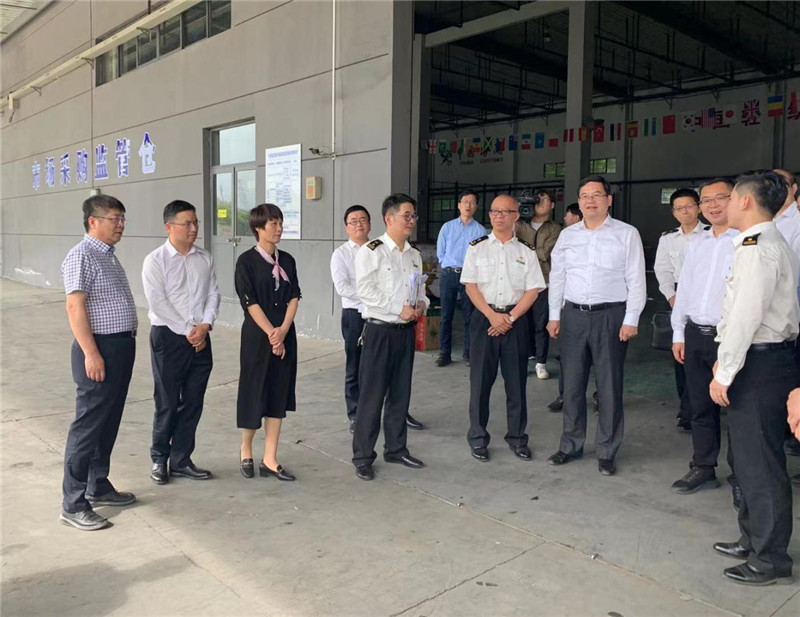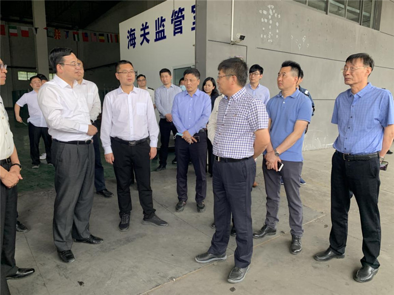 5月6日下午,绍兴市市长盛阅春、副市长邵全卯一行莅临中国轻纺城市场采购贸易监管中心开展调研,集团公司董事长潘建华、副总经理张伟夫陪同。盛阅春市长一行现场听取了市场采购贸易试点工作开展情况,查看了查验中的货物,对目前各项工作表示肯定的同时,对下阶段工作做了指示,要求有关部门牢固树立“项目为王”理念,落实各项经济指标,以市场采购贸易模式为抓手,大力发展出口经济,以实干业绩迎接建党100周年。