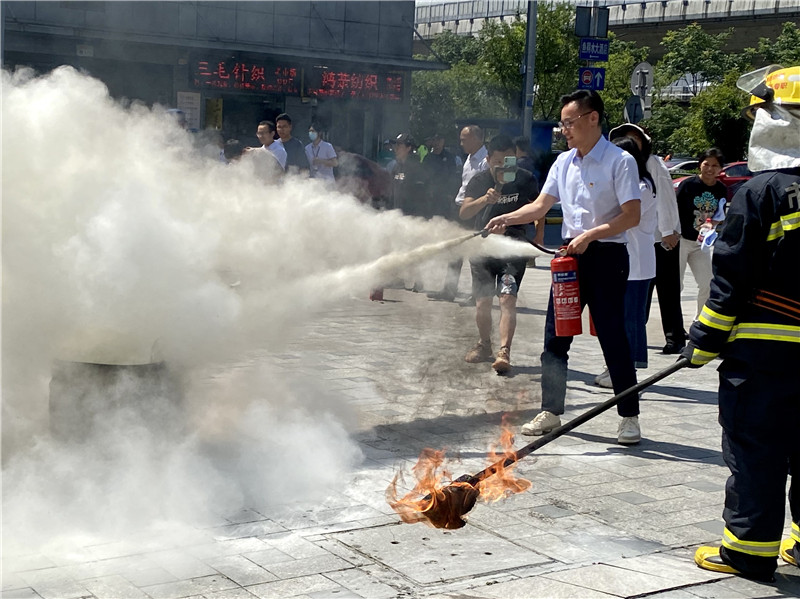 疏散逃生演练完成后,公司还开展了干粉灭火器实操演练。公司专职消防队员讲解了干粉灭火器的使用要领并现场演示,随后参演人员在指导下,亲身体验了使用灭火器灭火的有效方法。
