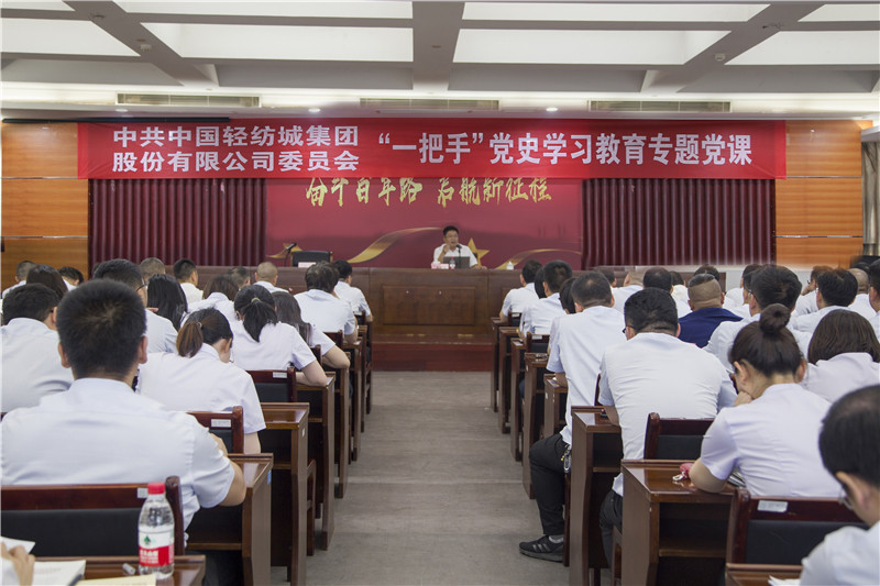 624日下午,轻纺城股份公司党委书记、董事长潘建华根据党史学习教育工作安排,按照“一把手”讲党课的职责要求,以《不忘初心、重温历史,牢记使命再出发》为题,给轻纺城全体党员讲授了一堂鼓舞人心、振奋精神的党史学习教育专题党课。党委副书记、副总经理王百通主持,公司初管及以上管理人员和党员代表119人参加。