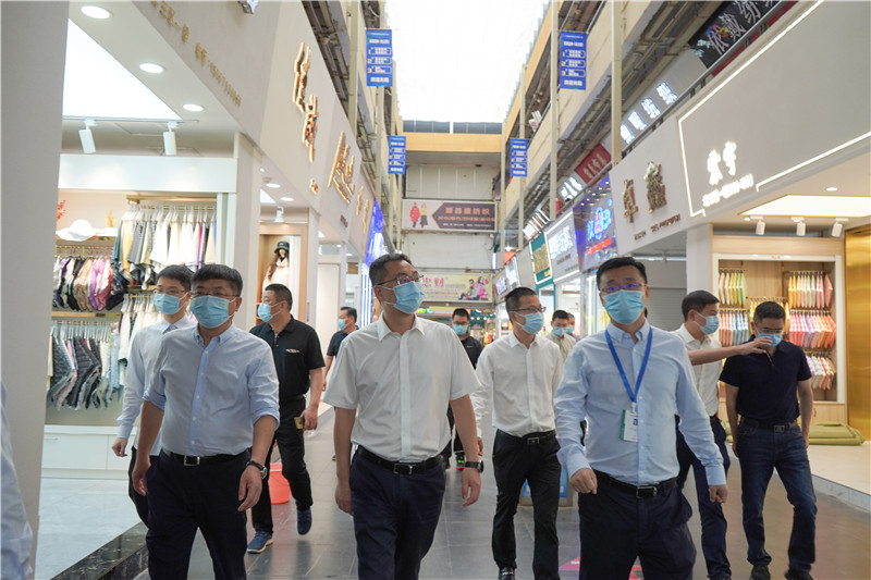 调研中,陈豪一行首先对市场疫情防控“大闭环”运作情况进行了解,随后走访了楚明纺织、盛峰聚尚两家门市,详细询问了复市情况以及本次闭市对经营造成的影响,并对市场目前的业态发展进行了调研。