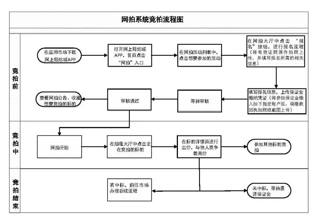 2021年12月27日起每日上午9:00开始,在“网上轻纺城”APP的“网拍”版块上对中国轻纺城坯布市场四楼124间营业房三年期临时使用权进行公开竞租,公告如下: 一、竞租标的:中国轻纺城坯布市场四楼124间营业房三年期临时使用权(租赁期限自2022年1月17日起至2025年1月16日止,租赁期满后无优先续租权),每间为一个标的。 二、竞租时间:2021年12月27日--30日,每日上午9:00开始竞租,共分为四批次进行,每批次竞租详情见“网上轻纺城”APP“网拍”版块。每批次竞租数量约为35间(根据竞租实际情况适度调整,竞租未成交营业房将撤回,由坯布市场公司另行招租)。 三、竞租报名对象:纺织品经营户或有意向经营纺织品的自然人(公司)。 四、展示时间及地点:2021年12月20—24日于坯布市场四楼或“网上轻纺城”APP的“网拍”版块。 五、报名时间、地点及参拍保证金缴纳: 1、网上报名时间:2021年12月20日-24日(9:00--16:00),在“网上轻纺城”APP的“网拍”版块上进行网上报名。竞租人在完成报名、缴纳参拍保证金,且参拍保证金到账,并通过本公司参拍资格审核后方能参与竞租活动。 2、参拍保证金缴纳:通过手机银行、网上银行等途径将参拍保证金缴入公司指定的银行账户。保证金交款人、竞租人、保证金退款人三者名称必须保持一致,不得更改。 六、竞租注意事项及规则: 1、竞租流程: (1)网上提交报名申请 将有效证照原件(自然人报名:身份证原件;法人或其他组织报名:营业执照或其他相关证照,法定代表人或该组织负责人身份证原件;委托报名的还须提供授权委托书,代理人身份证原件。自然人应本人报名,不允许委托报名。)拍照上传,并填写报名所需的相关信息。 (2)缴纳参拍保证金 通过手机银行或网上银行将参拍保证金缴入如下指定账户: 保证金缴入账户:绍兴市柯桥区中国轻纺城坯布市场有限公司 开户银行:交通银行绍兴中国轻纺城支行 账号:293016110018150129579 竞租人将缴款回执拍照或截图上传(缴款时请注明款项转出开户银行网点,同时注明款项用途为参拍保证金)。参拍保证金为2万元/标的(不计息,需参拍多个标的的保证金须累计缴纳)。 (3)报名资格审核 工作人员将逐一审核报名信息,确定参拍资格,并通过短信或电话通知竞租人。 (4)参与竞租 竞租人在公告规定时间内进入“网上轻纺城”APP的“网拍”版块参与竞租活动。 (5)款项缴纳及合同签订 竞租结束后,竞租成交人在2022年1月4日--6日内缴纳租金、物业费、押金等(首年物业费1800元/间/年、押金3000元/间,参拍保证金可抵充),并前往纺都大厦三楼坯布市场市场公司会议室签订营业房租赁合同及其它管理协议等。 2、已完成报名、已缴纳相应参拍保证金并通过资格审查的竞租人获得参拍资格;意向成交多个标的的参拍保证金须累计缴纳(不计息)。一个参拍资格在竞租成交之前竞租人可以参加任一标的(营业房)的竞租直至一个竞租成交或竞租全部结束(以先条件成就为准)。 3、本次竞租采用有保留价的增价竞租方式,保留价等于起拍价,至少一人报名且出价不低于起拍价,方可成交。网络拍卖会由自由竞价阶段(6分钟)和限时竞价阶段(1分钟)组成。在自由竞价阶段,竞租人可以在起拍价的基础上进行自由报价,限时竞价阶段是在自由竞价产生最高报价的基础上进行的。在限时竞价阶段,当其他竞租人有更高报价时,将同时产生新的倒计时竞价时间,直至最后一个限时报价阶段没有更高报价为止,当前报价最高的竞租人即为成交人,该标的的竞价结束。 4、本次竞租未成交的竞租人可在2022年1月6日凭本人身份证原件和参拍保证金缴款记录前往纺都大厦三楼坯布市场市场公司财务处办理参拍保证金退还手续,联系电话:0575-84569771。 5、竞租具体操作方式详见“网上轻纺城”APP“网拍”版块上的视频或文字说明。 6、如竞租人成交后逾期或未足额支付竞租价款、其他应付款项或不履行其他义务,竞租人应承担违约责任。竞租人违约或悔拍后致使本次竞租目的难以实现的,本公司有权解除竞租成交关系,竞租人则无权要求返还已交的参拍保证金,本公司有权将竞租标的重新竞租,重新竞租的成交价款低于原竞租价款的,竞租人应当补足差额。 7、本次竞租过程中,如果因系统故障或不可抗力因素导致竞租异常,发生异常之前已完成的竞租标的成交结果均有效,发生异常时,正在进行的竞租标的成交结果无效,待故障修复后,重新组织该标的的竞租。竞租过程如出现争议,以系统后台数据记录为准。 8、本次竞租是经法定公告期和展示期后才举行的,务必请竞租人在竞租前仔细审查竞租标的物,调查是否存在各种瑕疵,认真研究查看所竞拍标的物的实际现状,并请亲临展示现场,实地看样,未看样的竞租人视为对本标的实物现状的确认,请竞租人慎重决定竞租行为,竞租人一旦作出竞租决定,即表明已完全了解,并接受标的物的现状和一切已知及未知的瑕疵。本公司声明不保证竞租标的真伪或者品质等,且不承担本标的任何瑕疵担保责任(包括已知或未知瑕疵)。 9、竞租成交之前,因故中止或撤回竞租的,竞租人不得向本公司提出任何赔偿要求。 10、竞租过程中,竞租人一经应价,不得反悔,否则竞租人的保证金不予返还,并且还将承担由此引起的其他法律责任。 七、本此竞租活动由中国轻纺城集团纪检监察部门全程监督。 八、本公告未尽事项