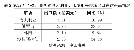 图1 2023年1-3月我国主要家纺产品出口额及出口额同比
