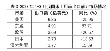 从产品品类看,床上用品和布艺产品下降明显。美国作为我国床上用品出口第一大市场,体量占比有明显收窄,1-3月对其出口床上用品9.36亿美元,同比大幅下降25.96%。