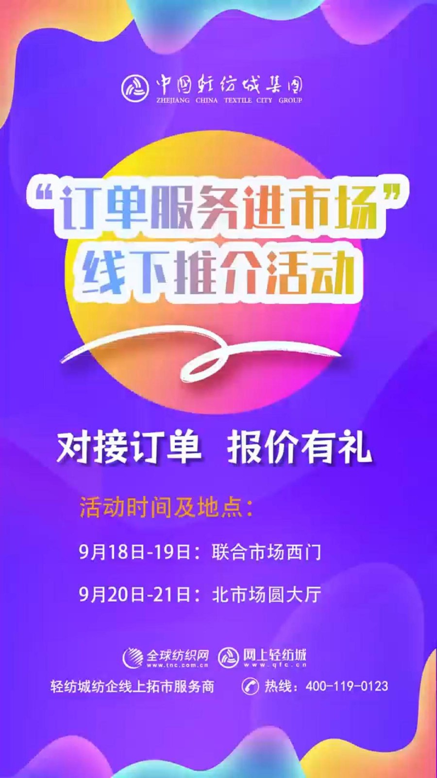 9月18-21日,联合市场、北市场“订单服务进市场”线下推介活动,对接订单,报价有礼等你来