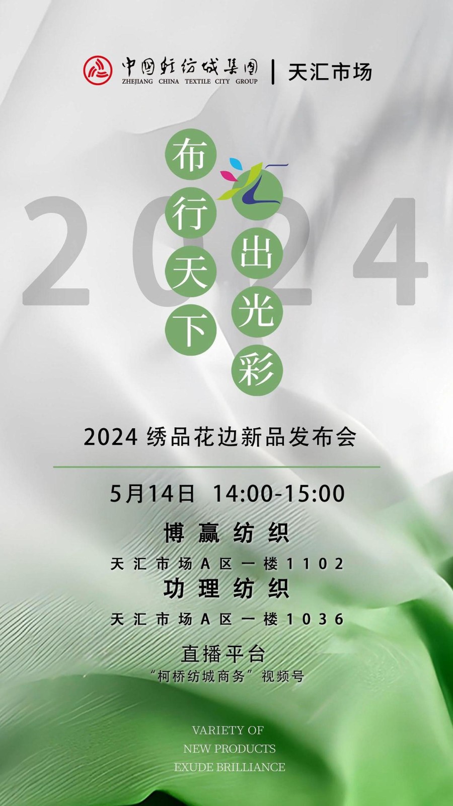 5月14日,14:00-15:00“布行天下,汇出光彩”2024绣品花边新品发布会,精彩内容,不容错过!# 中国轻纺城