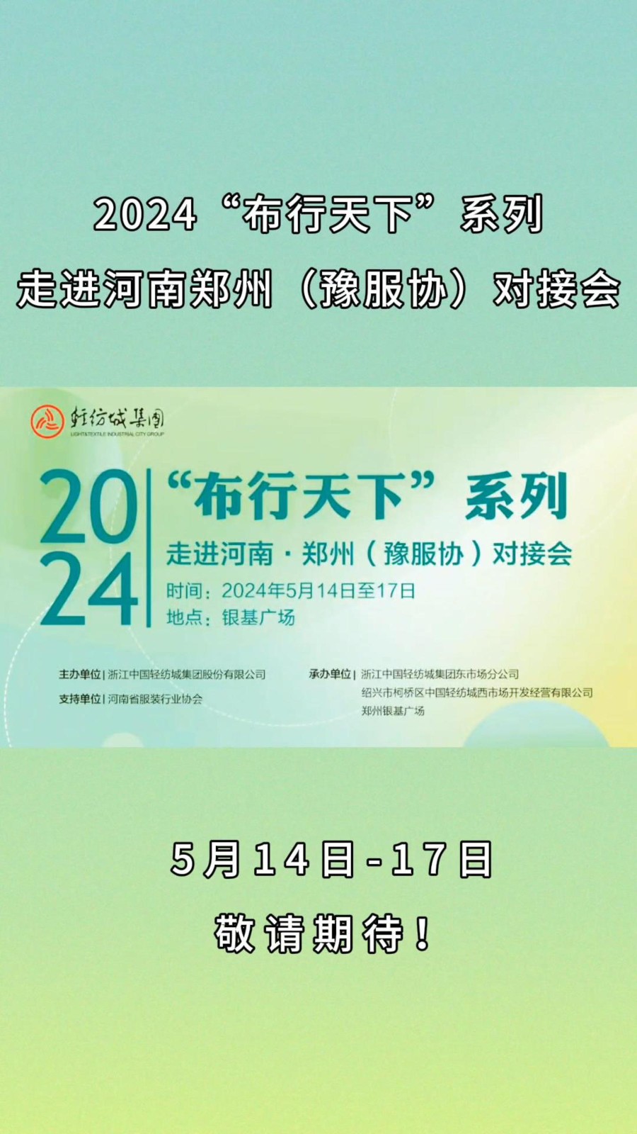 5月14日-17日,2024“布行天下”系列走进河南郑州(豫服协)对接会,敬请期待!# 中国轻纺城