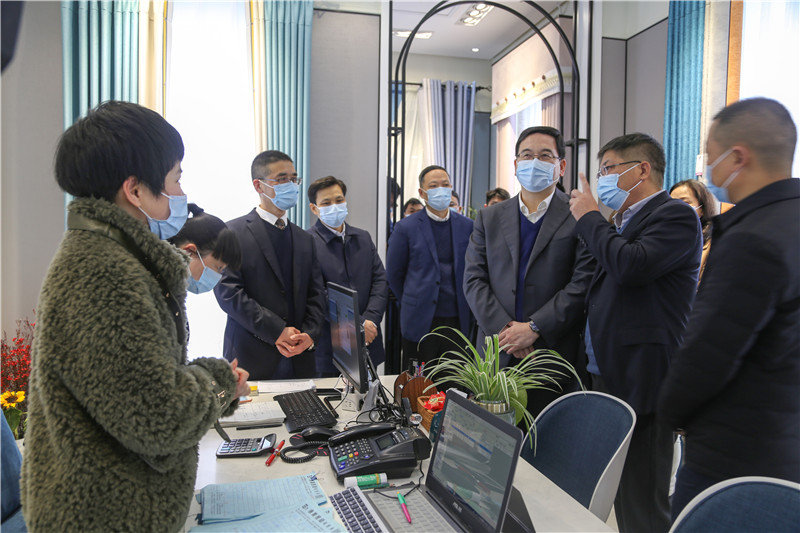 盛阅春一行先后走访了博美家纺、爱美丽时尚布艺馆、巴布可可等门市部,详细询问了窗帘布艺的生产制造加工、线上交易及复市后的经营情况。董事长潘建华表示,目前公司正大力推动数字市场建设,并将通过抖音、直播等平台,线上线下帮助经营户拓展业务渠道。