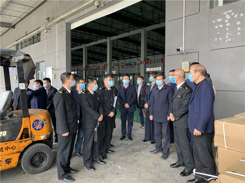 3月9日下午,绍兴市副市长邵全卯、副秘书长赵文栋等一行人员在绍兴市商务局局长钱肖华、绍兴海关关长梁升、柯桥区副区长方优美等陪同下,莅临中国轻纺城市场采购和跨境电商监管中心调研,集团公司董事长潘建华陪同调研。邵全卯一行实地查看了中国轻纺城市场采购和跨境电商监管中心,听取了半年多来市场采购和跨境电商的开展情况,对上述工作表示了肯定,并对下一步工作作出要求。
