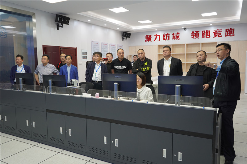 商会会长一行首先参观了公司的数字大屏,观看了数字轻纺城成功展示短片。在数字市场情指中心,公司党委副书记、副总经理王百通介绍了数字轻纺城平台各系统建设情况及模块演示和实际应用。