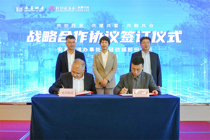签约仪式上,轻纺城城市服务公司副总经理戴文颖首先介绍了轻纺城股份公司与柯桥区安昌街道战略合作方案以及强村公司的基本情况。安昌街道党工委副书记、办事处主任周卓楠与轻纺城股份公司总经理王百通签署战略合作协议。