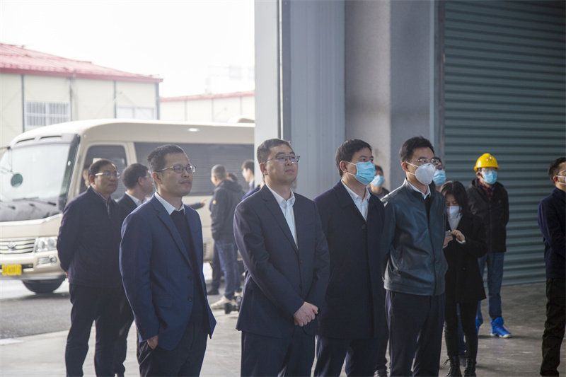 随后,陈豪一行来到轻纺数字物流港项目建设工地现场。在公共智能立体仓内,公司党委书记、董事长潘建华就该项目的投资规模、功能覆盖、“1+4+N”前景目标、现阶段建设进度、2023年度计划等内容进行汇报讲解,陈豪对项目现阶段建设取得的成绩予以充分肯定。