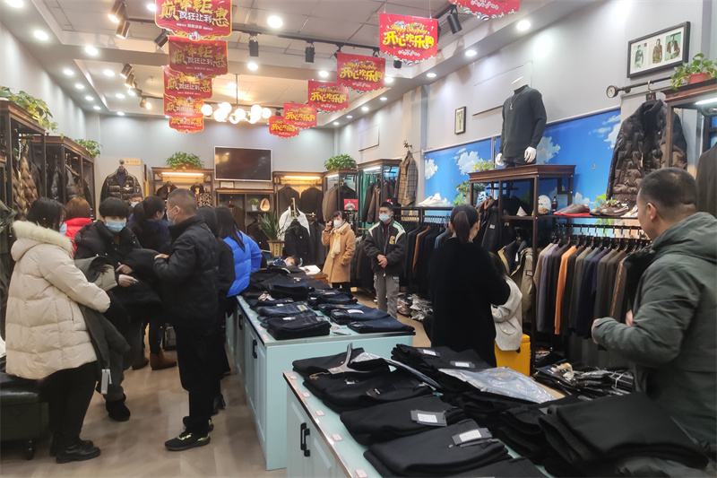 新春佳节,轻纺城服装市场内,大量柯桥市民穿梭在市场各店铺间边逛边选购心仪的产品,羽绒衣店、睡衣店、冬装店等咨询、下单的消费者络绎不绝。