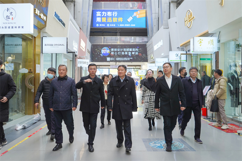 肖钢一行先后走访了东市场“大树&蓝”“思奈尔SINER”“LCOLOR+品川”及“天创”4家门市部,与经营户就主营产品、原料选择、销售渠道、创新能力、经营近况等进行详细交谈,同时了解到几家商户深耕纺织面料市场多年,具有一定的研发加工能力,主要经营中高端差异化品牌面料,包含醋酸、天丝、TR面料、羽绒等面料产品,近年来在注重美观、创意、时尚的基础上,还逐步向绿色环保领域进军。