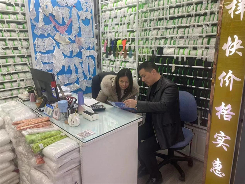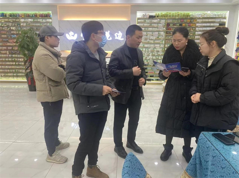 2月15日,招商小组赴义乌国际商贸城开展实地招商调研。根据前期对义乌商贸城的调查了解,招商小组前往商贸城四区三楼花边专营区,针对性发放天汇市场专营区招商宣传折页,并向意向经营户介绍说明了轻纺城天汇市场绣品、花边专营区招商政策及相关情况。招商小组共走访门市部200余家,推广效果良好,有门市负责人表达了对天汇专营区的浓厚兴趣,准备汇报集团拟在天汇市场开设销售点,并约定近日前来天汇市场实地考察。