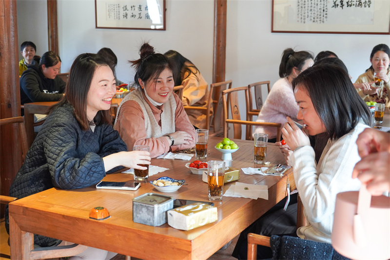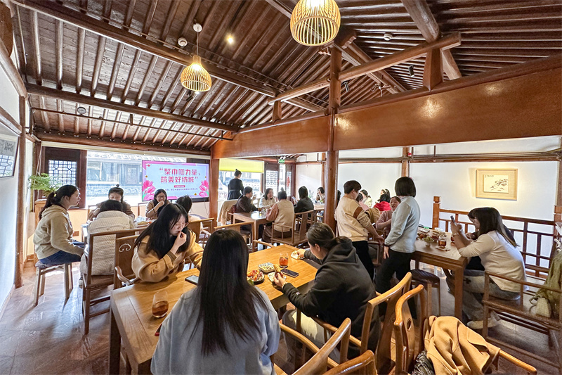 40位公司女员工共聚一堂、活动现场气氛温馨,本次活动邀请了专业老师详细介绍茶道花艺的相关知识,活动分为茶点品鉴、茶艺表演、围炉煮茶和花艺插花四个环节,大家一起品茶香、倾听茶的悠久历史,学插花、感受花的独特魅力。
