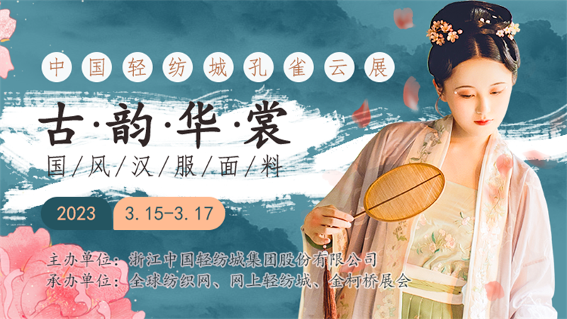 317日,中国轻纺城·孔雀云展(国风汉服面料专场)顺利闭幕,截至下午4时,云展观展人次超110万,索样102款。