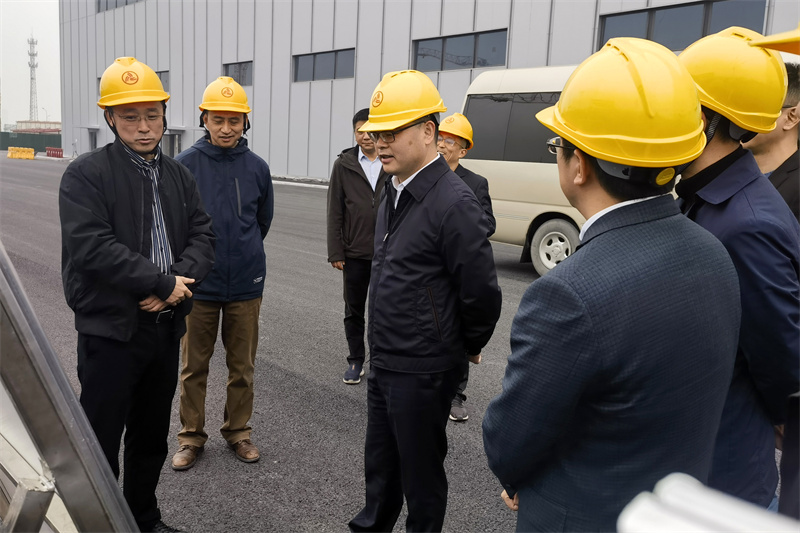 袁建一行首先听取了股份公司关于项目的整体介绍、目前建设情况、下阶段工作计划及如何立足“轻纺+数字+物流”运营模式的情况汇报,并对项目现阶段的建设情况给予了充分肯定。随后,实地参观了公共智能立体仓标段,了解公共智能立体仓高架仓仓储系统调试情况,公共智能立体仓主体于2023年1月9日完成竣工初验,目前处于单机调试阶段,计划五月份完成联合调试,六月底正式投入使用。袁建指出,工程建设要牢固树立以人为本,安全第一的理念,加快建设进度,同时要提前谋划配备一支知识化、专业化、年轻化的管理团队,主动靠前服务,助推运营管理起好步、开好局。