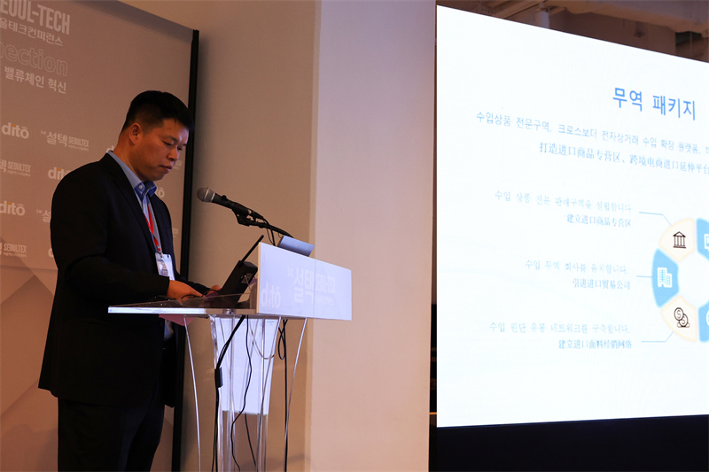 论坛活动区也相继开展了以“韩国时装,全球CBT事业的机会和未来”、“面向全球电子商务的数字内容核心战略”等为主题的分享会,期间,公司副总经理季江锋以数字轻纺为核心进行分享,详细介绍了公司的发展历程、数字化运营经验以及未来发展方向,为在场人员带来了一场生动的数字轻纺盛宴。