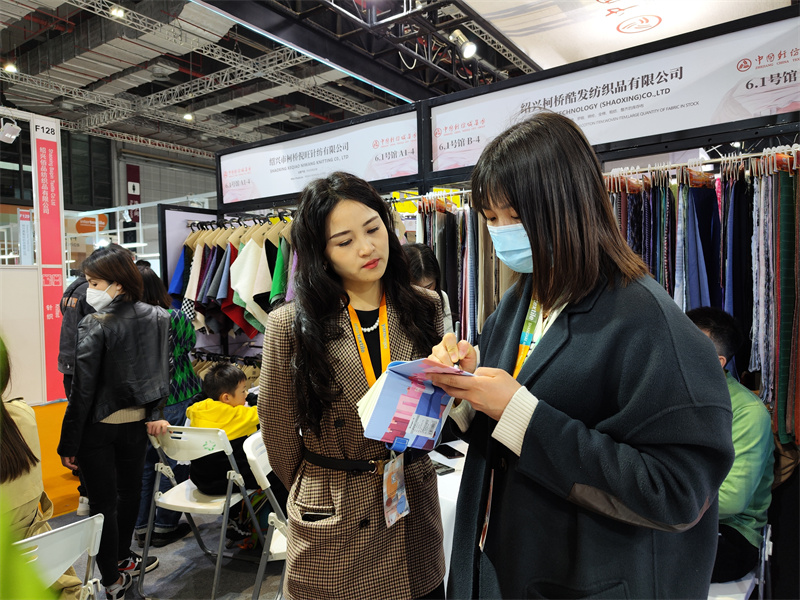 中国国际纺织面料及辅料博览会是一场纺织行业洞悉发展新风向、新动态、新趋势的专业性盛会。此次,轻纺城精品展团携TR、针织、梭织、提花、天丝、色丁、四面弹等超5000款最新、最流行、最具功能性的纺织面料参展亮相,现场反响热烈,已有超过十家企业收到询单,有不少参展商表示,此次展会是一次难得的学习机会,能够更好地了解国内外先进的技术和产品,进一步加深对行业发展趋势的了解,提升企业的核心竞争力,更好地服务客户。