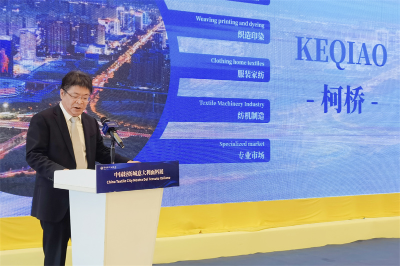 轻纺城股份公司董事长潘建华在展会上向现场来宾宣传推介中国轻纺城,他指出中国轻纺城在过去30年中逐渐发展成了中国规模最大、经营品类最多的纺织品集散中心,拥有有从原料制造到印染织造到面料交易的完整产业链,近年来更是深入推动“丝路柯桥·布满全球”行动,不断融入国际经贸“朋友圈”。公司向普拉托发出诚挚邀请,接下来将与其建立更加紧密的联系,计划建立进口商品专营区、专业进口贸易公司以及进口商品交易中心等一系列合作“跳板”,并将电商直播、小单快反、创意工作室等新兴业态与普拉托的纺织服装设计等快时尚资源有机融合,打造辐射全中国的面料进出口支点。