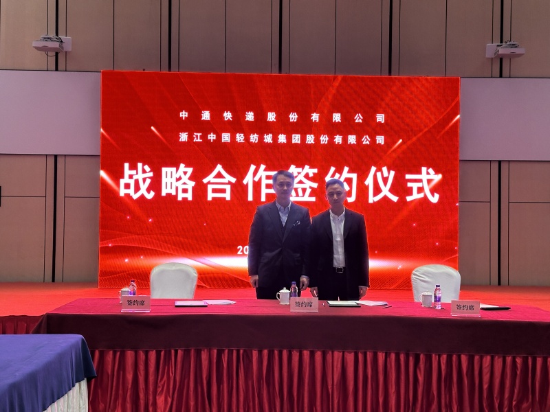12月30日,浙江中国轻纺城集团股份有限公司战略合作签约仪式在绍兴柯桥盛大启幕,活动现场,中国轻纺城集团携手浙江国贸云商控股有限公司、杭州市民卡支付有限公司、东方金诚国际信用评估有限公司、东方金诚信用管理(北京)有限公司、中通快递股份有限公司共同达成合作签约。