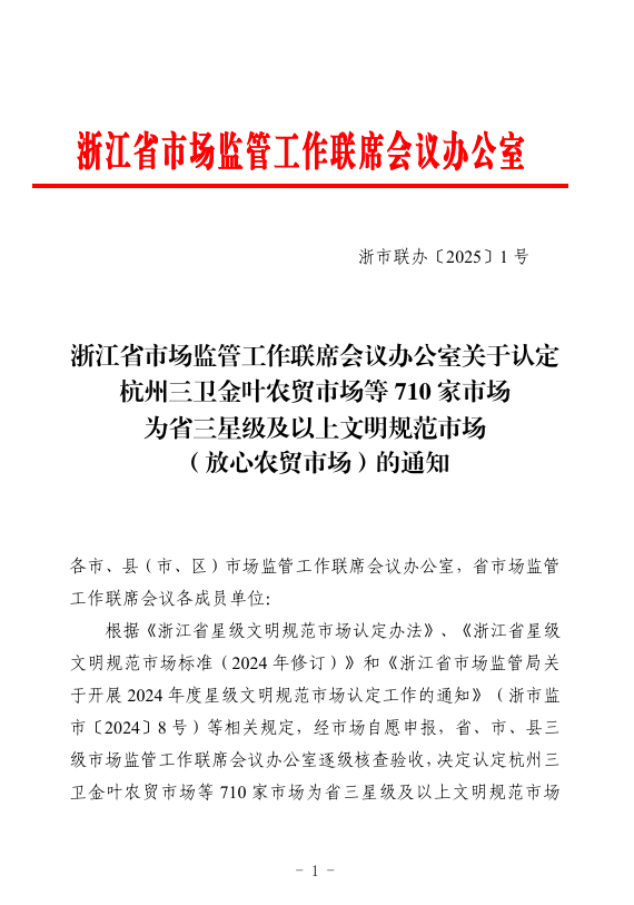 近日,浙江省市场监管工作联系会议办公室公布“省三星级及以上文明规范市场”名单,公司下属6家专业市场光荣上榜。其中浙江中国轻纺城(东升路市场)获评五星级文明规范专业市场;绍兴市柯桥区中国轻纺城联合市场和绍兴市柯桥区中国轻纺城坯布市场获评四星级文明规范专业市场;绍兴市柯桥区中国轻纺城国际面料采购中心市场、绍兴中国轻纺城毛纺面料市场、绍兴中国轻纺城天汇窗帘窗纱市场被评为三星级文明规范专业市场。成功创建(续创)星级文明规范专业市场,充分展现了公司在市场文明规范建设方面的成就。下一步,公司将加快改革创新步伐,巩固创建成果,不断提升市场管理和服务水平,进一步增强市场竞争力。